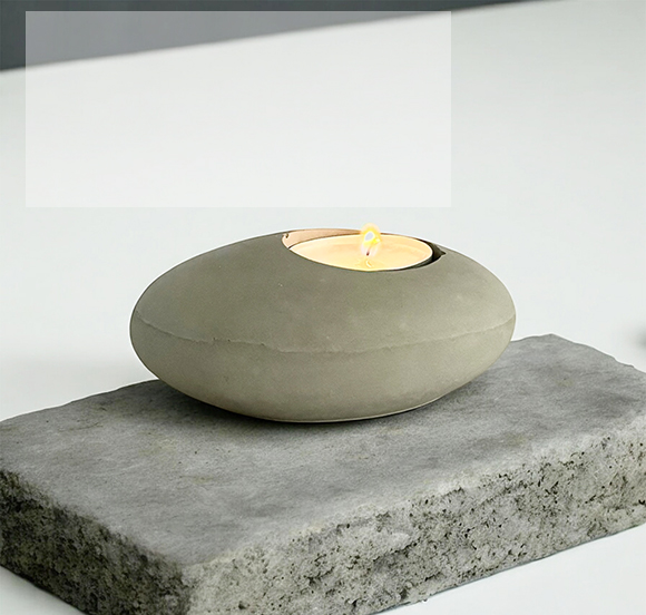 Ce photophore en béton gris pierre se distingue par son design naturel et minimaliste. Avec des dimensions de 10,5 x 8,5 cm, il offre une esthétique épurée inspirée des galets. Idéal pour accueillir des bougies chauffe-plat, son socle de 3,8 cm est parfaitement adapté pour stabiliser la flamme tout en sublimant son éclat.