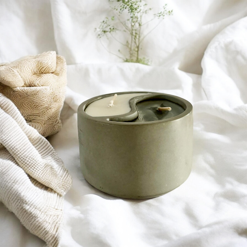 L’harmonie des sens en deux parfums - Plongez dans une expérience sensorielle unique avec la bougie Yin & Yang, un équilibre parfait entre deux fragrances envoûtantes : Feuilles de cerisier & Nectarine et Jasmin. Fabriquée à partir de cire de soja et présentée dans un élégant pot en béton ciré, cette bougie incarne l’union des contrastes, entre fraîcheur vibrante et douceur florale.